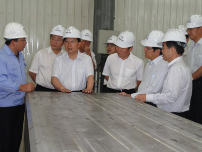 在青海聚能鈦業(yè)有限公司,強衛(wèi)書記一行首先登上EB爐,仔細察看設備運行和鈦錠熔鑄過程,詢問工藝流程、熔煉技術、勞動防護、職工收入等情況。在原材料篩分區(qū),強書記察看了海綿鈦的篩分及其規(guī)格和形狀,了解了原材料供應、產品銷路和價格等情況,并察看了純鈦扁錠切割和成品存放區(qū)。強衛(wèi)書記非常關心我省特種新材料產業(yè)的發(fā)展,在聽取了青海水電集團董事長、黨委書記唐增科,總經理王海青、副總經理吳世周關于青海聚能鈦業(yè)設備引進、生產目標、市場前景、后續(xù)投資計劃等的匯報后,強書記希望企業(yè)抓緊項目建設,積極延伸產業(yè)鏈,加大規(guī)模、增強效益。