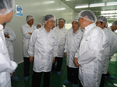 在青海聚能電力有限公司,強書記一行換上凈化服,進入到寬敞、明亮的車間,沿著現(xiàn)代化的流水線作業(yè)生產線,仔細察看了100MW多晶硅太陽能電池片清洗制絨、擴散、刻蝕、PE、絲印、燒結、分類檢測等工序流程,詳細詢問和了解設備性能、工藝特性、產品參數(shù)、人員配備及產能規(guī)模等情況。青海水電集團和聚能電力負責同志現(xiàn)場匯報了該公司目前面臨的困難和下一步發(fā)展目標,強書記指出,太陽能電池產業(yè)在我省剛剛起步,受市場波動影響較大,但企業(yè)要看到危機中存在的機遇,努力在技術革新、產品質量上尋求突破并搶占先機,待市場好轉后力爭有大的發(fā)展;要加大光伏產業(yè)資源的整合和配套,不斷擴展完善產業(yè)鏈條,切實增強企業(yè)抵御市場風險的能力。他叮囑隨行的省政府領導,要在政策、資金和光伏電站資源配置等方面給予企業(yè)支持和幫助。