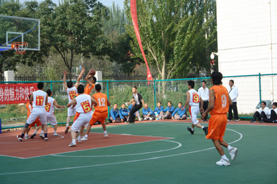 開幕式結束后,集團公司王海青總經理為首場比賽(青海玉樹電力公司代表隊和青海省水利水電工程局代表隊)開球。隊員們你追我趕、卡位、傳球、跳投等一連串動作得心應手,現(xiàn)場加油聲、鼓掌聲不斷,比賽在和諧奮進的氛圍中展開。