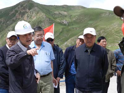 (玉電) 7月的玉樹,正值災后重建如火如荼進行之際,水利部副部長胡四一、民盟中央副主席索麗生、水利部總工程師江洪、水利部長江委主任蔡其華等一行53人組成的黃河河源區(qū)保護專題調研團,蒞臨青海水電集團玉樹禪古電站水庫調研。