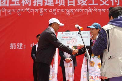 省委常委、省政府常務(wù)副省長、玉樹災(zāi)后重建現(xiàn)場指揮部指揮長徐福順,國務(wù)院國資委綜合局局長劉南昌、省政府副秘書長毛占彪、玉樹州政府副州長布尕、中國建筑材料集團(tuán)有限公司(以下簡稱中國建材集團(tuán))總經(jīng)理姚燕、副總經(jīng)理劉寶瑛,以及省國資委、發(fā)改委、建設(shè)廳、民政廳有關(guān)領(lǐng)導(dǎo)出席了當(dāng)天在結(jié)古鎮(zhèn)舉行的捐贈儀式。青海水電集團(tuán)總經(jīng)理王海青代表受捐方接受了捐贈支票。劉南昌局長、姚燕總經(jīng)理、布尕副州長分別在儀式上講話。姚燕在講話中表示,中國建材集團(tuán)還將一如既往地支持災(zāi)區(qū)發(fā)展建設(shè),努力發(fā)揮產(chǎn)業(yè)與科技優(yōu)勢,用新的理念、新的技術(shù)、新的生產(chǎn)方式,為玉樹地震災(zāi)區(qū)災(zāi)后重建做出更大的貢獻(xiàn)。
