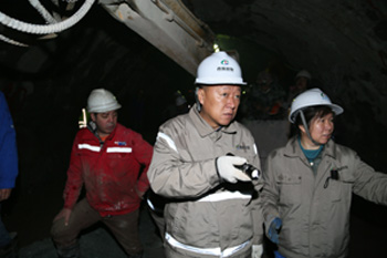 慰問期間,集團(tuán)領(lǐng)導(dǎo)一行乘坐軌道車深入到距離洞口7.4km的輸水隧洞出口段施工現(xiàn)場,仔細(xì)察看了TBM維修當(dāng)前開挖掌子面巖性和主洞、旁通洞第三段人工鉆爆施工狀況,要求參建各方加強(qiáng)溝通協(xié)調(diào),縝密安排施工計(jì)劃,強(qiáng)化現(xiàn)場管理,高度重視安全工作,切實(shí)加快施工進(jìn)度和TBM改造工作,合理規(guī)劃,統(tǒng)籌兼顧,為TBM盡早啟動掘進(jìn)創(chuàng)造條件。