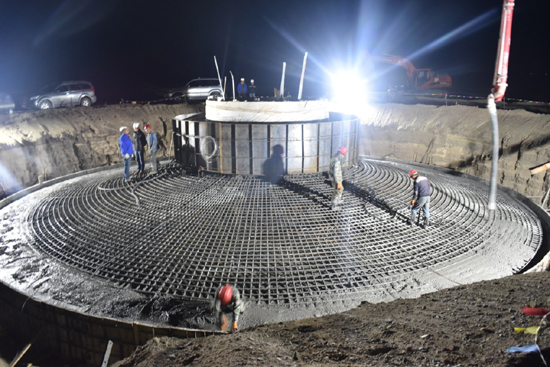 近一個多月來,茫崖風電公司以扎實開展“兩學一做”學習教育為契機,有效發(fā)揮黨員干部的先鋒模范作用,充分調動各方面積極性和創(chuàng)造性,凝心聚力,戰(zhàn)勝強風揚沙等惡劣氣候條件帶來的困難,全面統(tǒng)籌協(xié)調推進工程建設工作,取得重要成果。在完成全部20臺機組基坑開挖、混凝土墊層澆筑及鋼筋加工制作任務的同時,其首臺機組鋼筋混凝土基礎于919日晚24點澆筑成型,至107日共澆筑6臺機組基礎。目前,各參建單位正加班加點,緊張有序地按計劃節(jié)點落實任務,確保在10月底結束全部土建作業(yè),11月上旬開始塔架和機組安裝工作。茫崖風電公司全體員工決心團結協(xié)作、真抓實干、攻堅克驗證,力爭在年內實現首臺機組并網發(fā)電目標,為壯大青海水電集團新能源業(yè)務,服務我省綠色經濟發(fā)展大局做出積極貢獻。(文/生國 圖/茫崖風電)