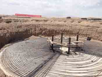 該風(fēng)電場項(xiàng)目位于海西州茫崖石棉礦區(qū)南部,規(guī)劃裝機(jī)容量200兆瓦,總投資約25億元,擬分兩期實(shí)施。一期項(xiàng)目先行裝機(jī)20兆瓦,共安裝8臺(tái)2.5兆瓦的風(fēng)電機(jī)組,投資約3億元。其發(fā)電機(jī)組及附屬設(shè)備由東方電氣股份有限公司中標(biāo)供應(yīng),基礎(chǔ)工程由青海水電實(shí)業(yè)有限責(zé)任公司中標(biāo)承建,風(fēng)電塔架設(shè)備由中國水利水電第四工程局有限公司中標(biāo)供應(yīng),甘肅三維水電工程建設(shè)監(jiān)理有限公司青海分公司負(fù)責(zé)監(jiān)理工作。經(jīng)過青海水電集團(tuán)茫崖風(fēng)電有限公司認(rèn)真籌劃和精心準(zhǔn)備,該項(xiàng)目于55開工。截至626,開挖直徑22、深4的機(jī)組基礎(chǔ)開挖、墊層混凝土澆筑及基礎(chǔ)環(huán)安裝全部完成,目前正在加緊進(jìn)行底座鋼筋混凝土澆施工,預(yù)計(jì)8月底開始塔筒和機(jī)組安裝工作,10月底具備調(diào)試和試運(yùn)行條件。
