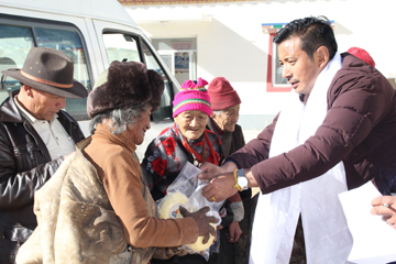 幾天來,該公司黨委書記、總經(jīng)理白瑪然丁,黨委副書記、紀(jì)委書記、工會(huì)主席張貴良,帶領(lǐng)工會(huì)、辦公室、黨群辦等部門負(fù)責(zé)人,分別慰問了扎西大同敬老院、民主路敬老院、新寨敬老院、東風(fēng)村敬老院、隆寶鎮(zhèn)敬老院的56名孤寡老人,并給他們送去了價(jià)值2.8萬余元的酥油、炒面、冬裝藏袍、暖瓶等生活必需品。每到一處,老人們都露出了幸福的笑容,紛紛伸出大拇指感謝黨組織的真情真意和關(guān)心關(guān)愛。一位雙眼失明的老奶奶更是紅了眼眶,嘴里不停的念叨,感謝玉樹電力公司,讓她感覺到了家的溫暖。一位孤寡老爺爺不停地感謝黨和政府,感謝玉樹電力公司,并說看到他們送來的生活用品,自己感覺今天像過年一樣。在了解了實(shí)際情況后,白瑪然丁同志自已又掏了400元錢塞到兩位生活特別困苦的老人手中。他說:尊老愛幼是中華民族的傳統(tǒng)美德,今后企業(yè)還會(huì)繼續(xù)創(chuàng)造條件,盡力為群眾解決實(shí)際困難,用自己的行動(dòng)傳播正能量,讓社會(huì)弱勢(shì)群體感受到來自黨和社會(huì)的關(guān)心與愛護(hù)。