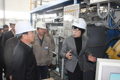 蘇寧同志一行首先來到青海水電集團下屬青海聚能鈦業(yè)有限公司,登上電子束冷床(EB爐),仔細(xì)察看設(shè)備運行和鈦錠熔鑄過程,詢問工藝流程、熔煉技術(shù)情況,了解鈦行業(yè)發(fā)展前景,體驗一線工人的作業(yè)環(huán)境,并與職工及外籍技術(shù)人員一一握手交談,詢問他們的生活、工作及收入等情況,鼓勵他們再接再厲,為企業(yè)和社會經(jīng)濟的發(fā)展添磚加瓦。