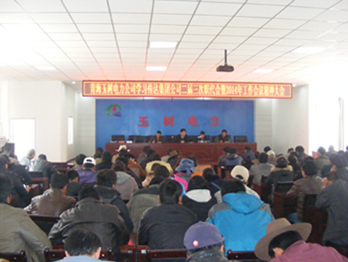 329上午,玉樹電力公司召開職工大會,學習傳達集團公司二屆三次職代會暨2014年工作會議精神。該公司領(lǐng)導白瑪然丁、梁東峻、王安福、桑巴土登及中層管理干部、結(jié)古地區(qū)干部職工共200人參加會議。
